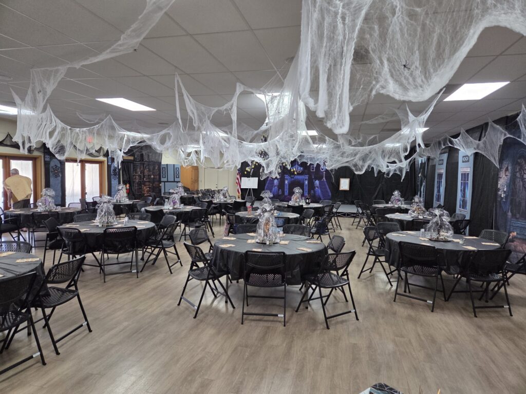 Each year we hold a community based event to kickoff our fund raising. For 2025 we had Halloween themed dinner. This shows the setup.