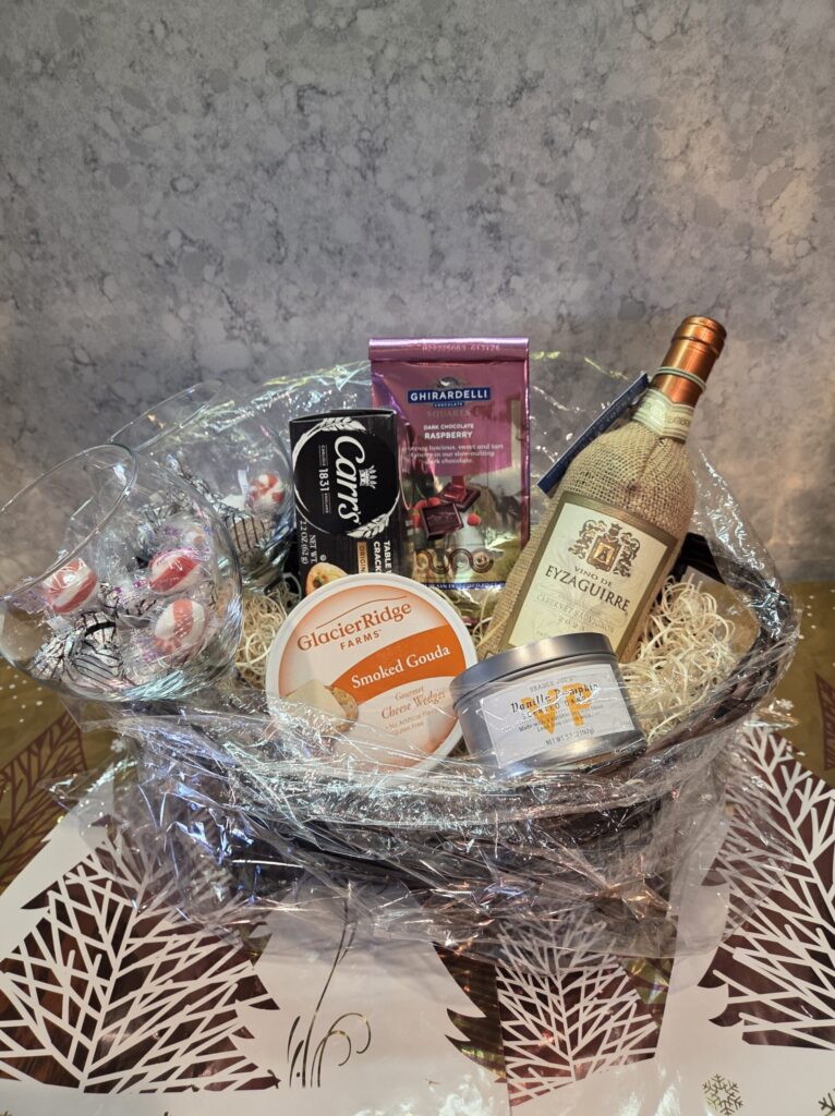 Baskets of goodies were donated for raffle prizes. This basket is one of four that were donated.